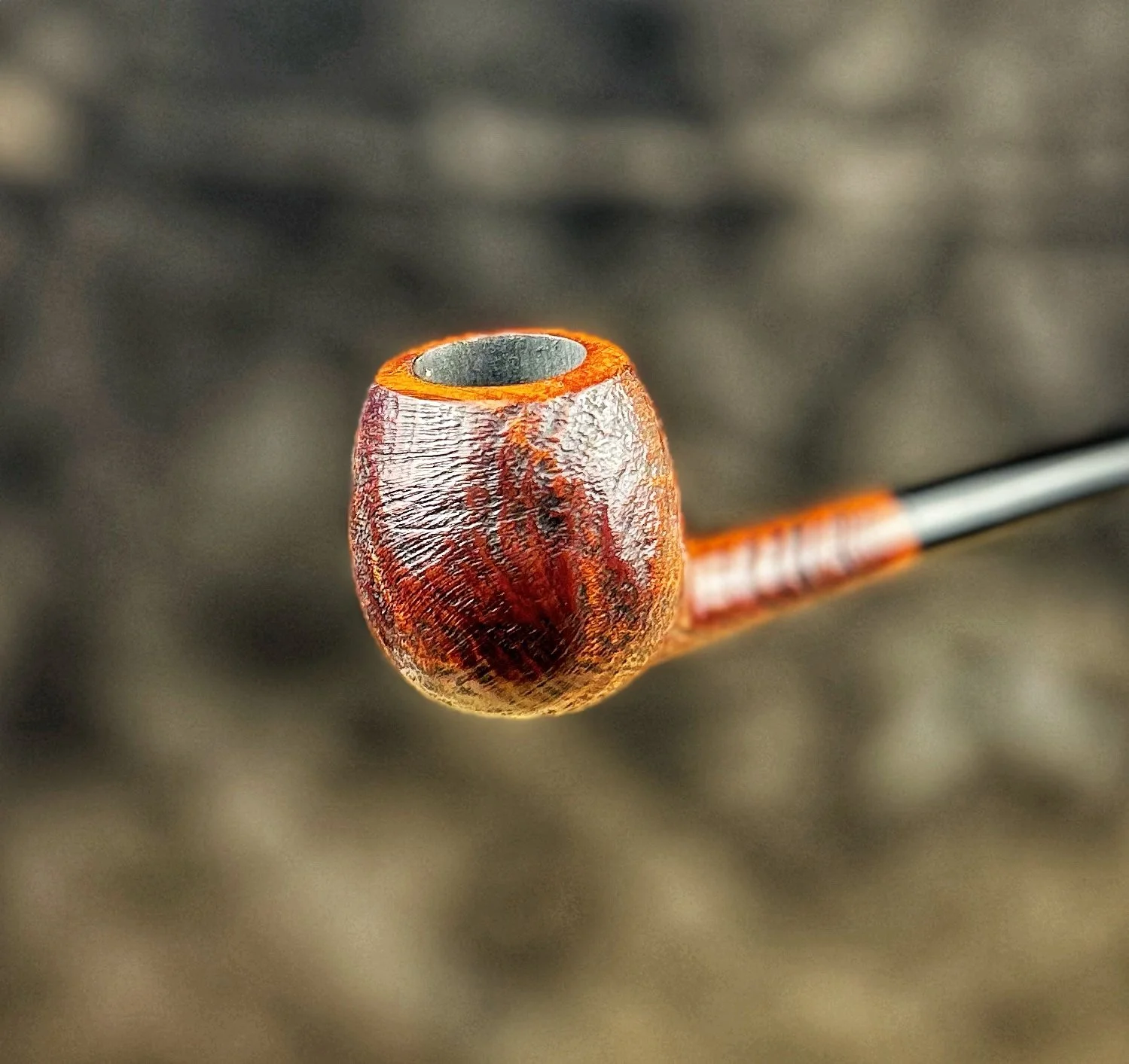 Sandblasted Apple with ebonite stem. Non filter. Aged briar.