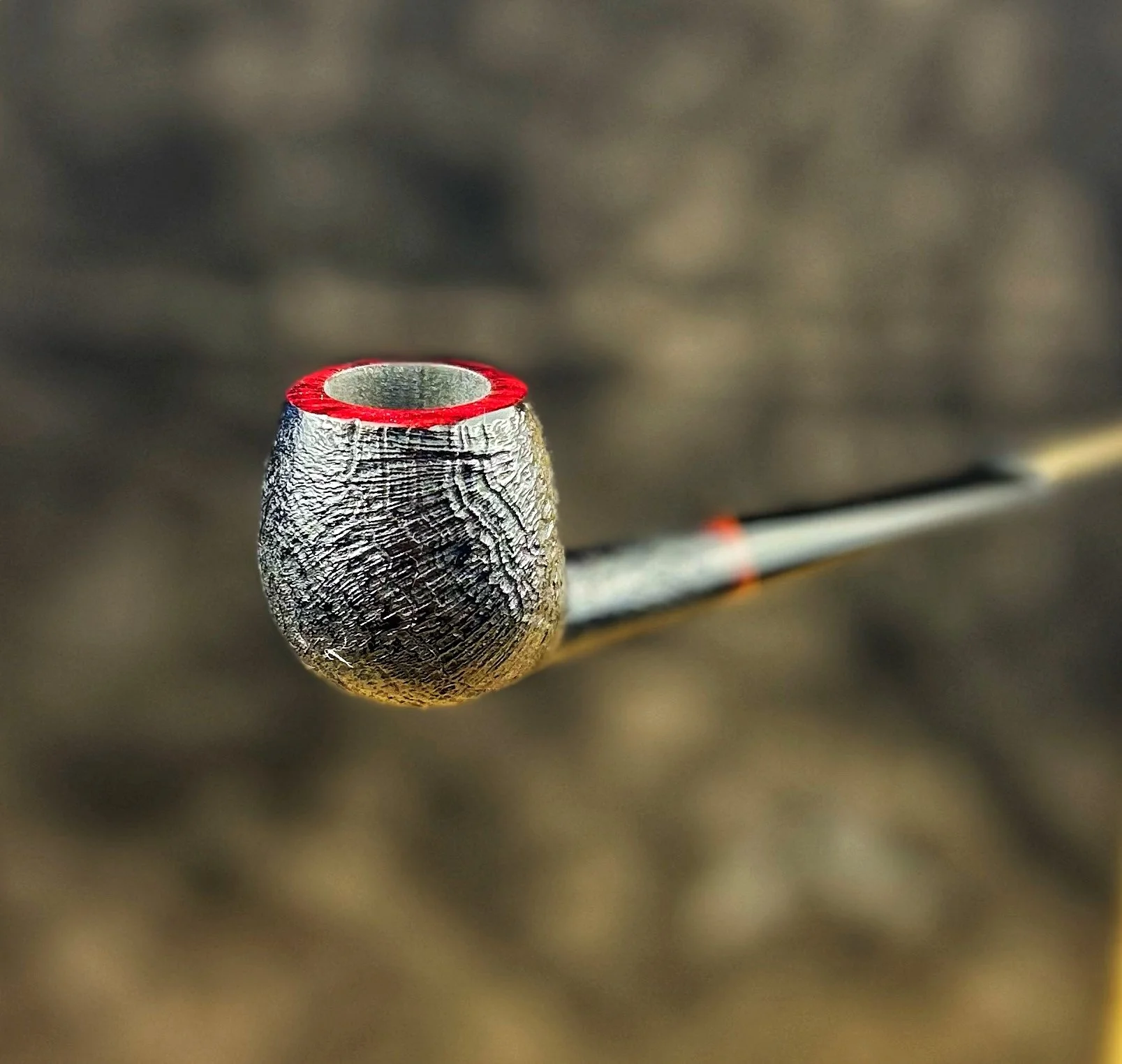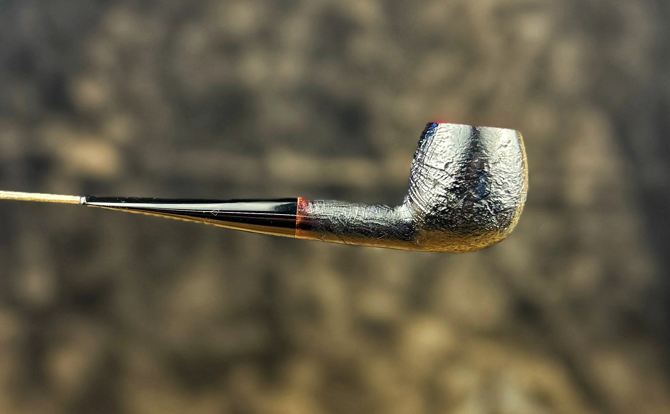 Sandblasted Apple in black with ebonite stem. Non filter. Aged briar.